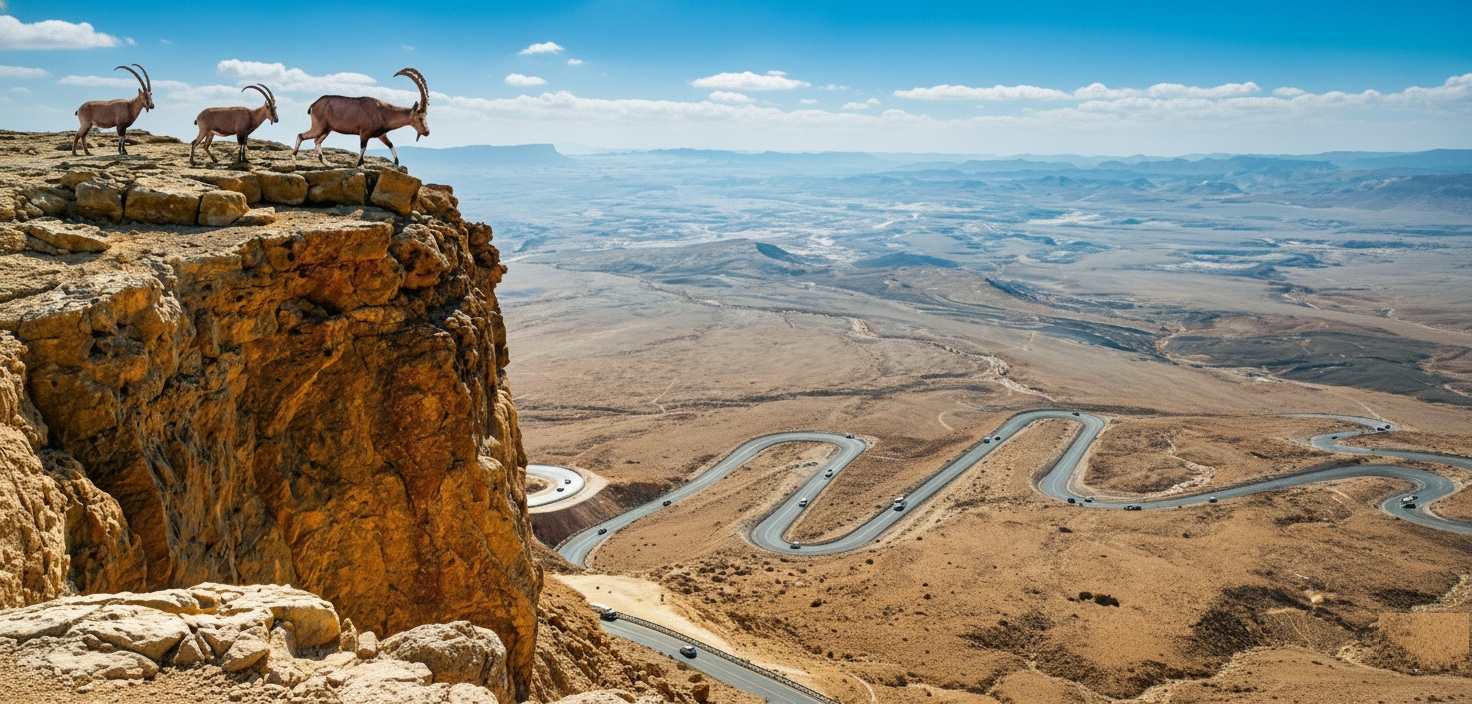 After absorbing the ancient history of the Nabataeans at Avdat, we head south to the cliff edge at Mitzpe Ramon. There, we will stop for a breathtaking panoramic view of the Ramon Crater (Makhtesh Ramon). As we observe the world’s largest erosion cirque, we will understand how it serves as a “geological window” into rock layers millions of years old. This is the perfect vantage point to imagine the challenges that awaited the ancient merchants before their descent into the depths.